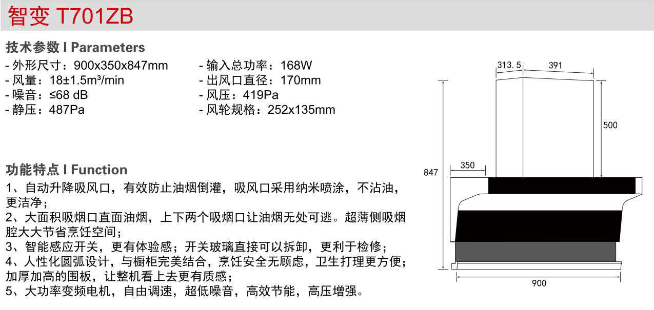 自動(dòng)升降吸風(fēng)口,有效防止油煙倒灌....